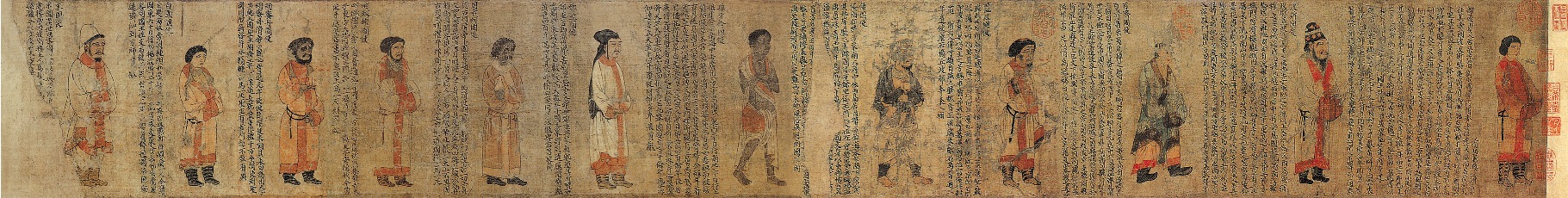 Bukan itu sahaja,pada masa pemerintahan Maharaja Yuan dari Dinasti Liang,terdapat sebuah lukisan yang memaparkan 25 duta dari pelbagai negara yang berkunjung ke kerajaan dinasti Liang.Lukisan yang masih sempat diselamatkan pada hari ini adalah salinan dari era dinasti Song,yang berdasarkan lukisan asal dari dinasti Liang itu.