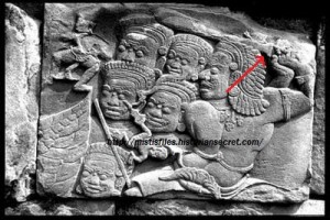 Gambaran hulubalang Melayu dengan identiti keris mereka pada sebuah bas-relief kuil Angkor era Jayavarman II